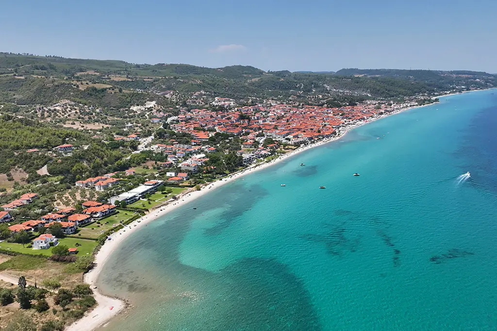 Polychrono is one of the most charming seaside villages on the Kassandra peninsula in Halkidiki, Greece. Known for its long golden-sand beaches, relaxed atmosphere, and family-friendly vibe, it blends traditional Greek character with modern holiday comforts. With crystal-clear waters, vibrant summer nightlife, and easy access to natural attractions, Polychrono is an ideal base for both relaxation and exploration.