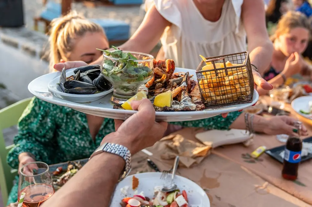 • Tavernas: Fresh seafood, souvlaki, moussaka, grilled vegetables