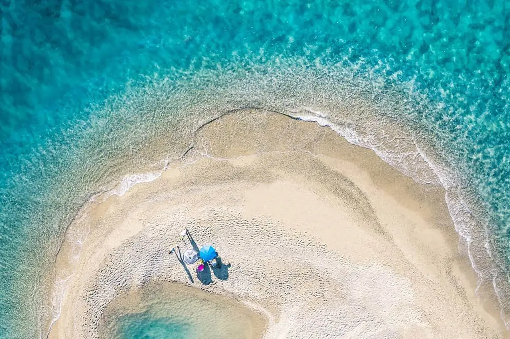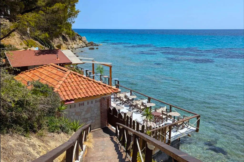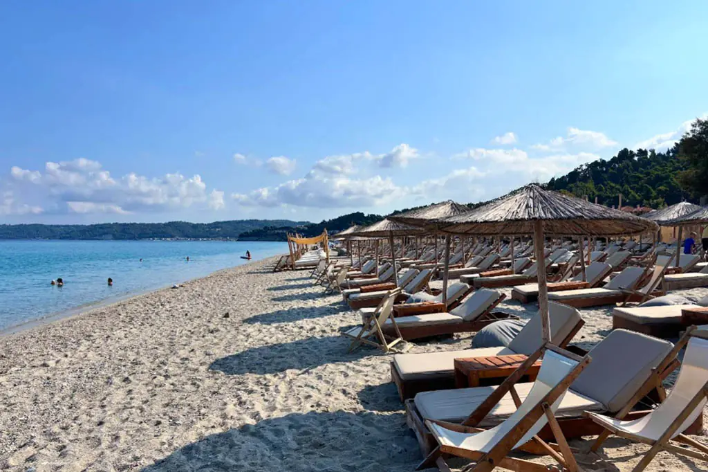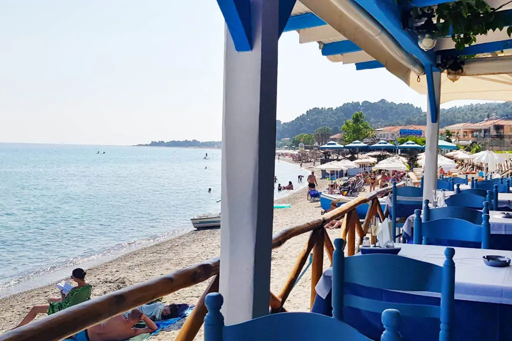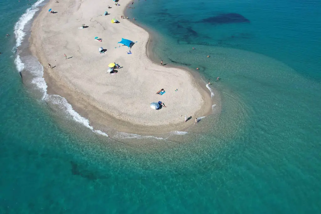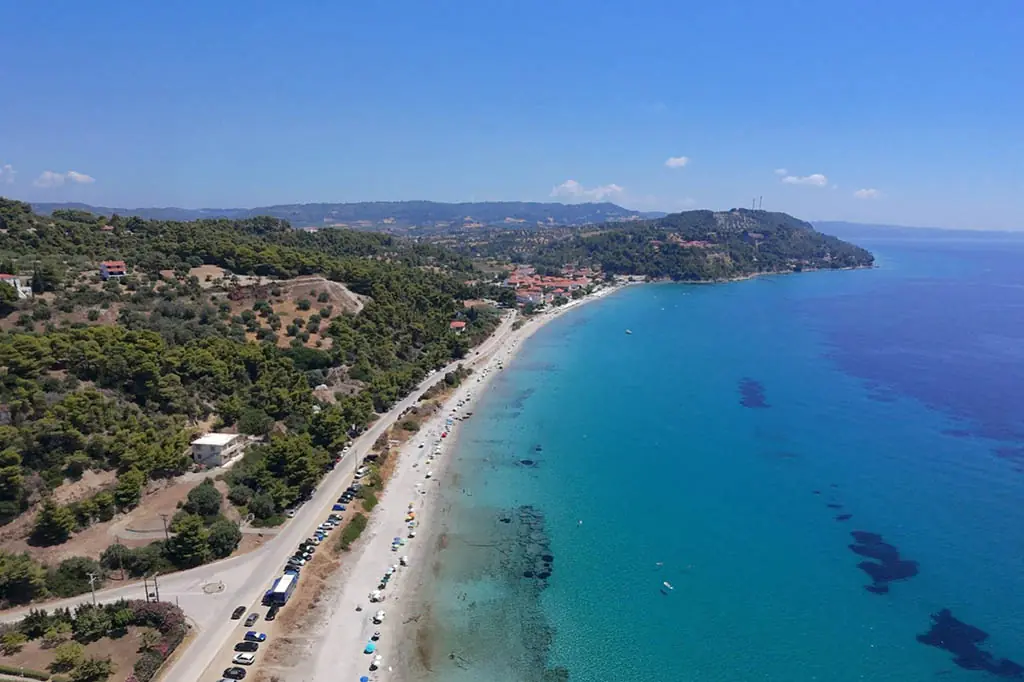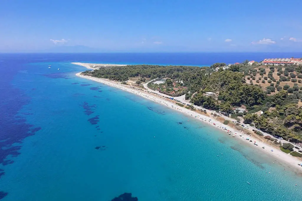 Najznačajnija znamenitost područja. Uski pješčani sprud dramatično se proteže u more, stvarajući osjećaj kao da stojite na samom rubu poluotoka. Kristalno čisto more s obje strane i zapanjujući zalasci sunca čine ovo jednim od najfotogeničnijih mjesta na Halkidikiju.