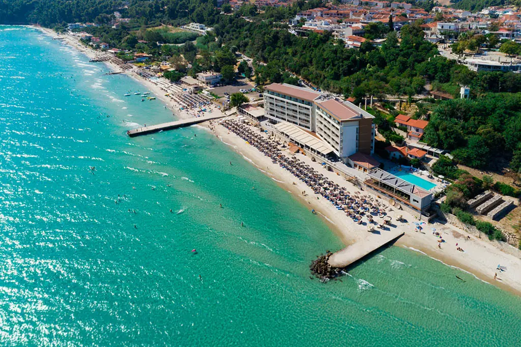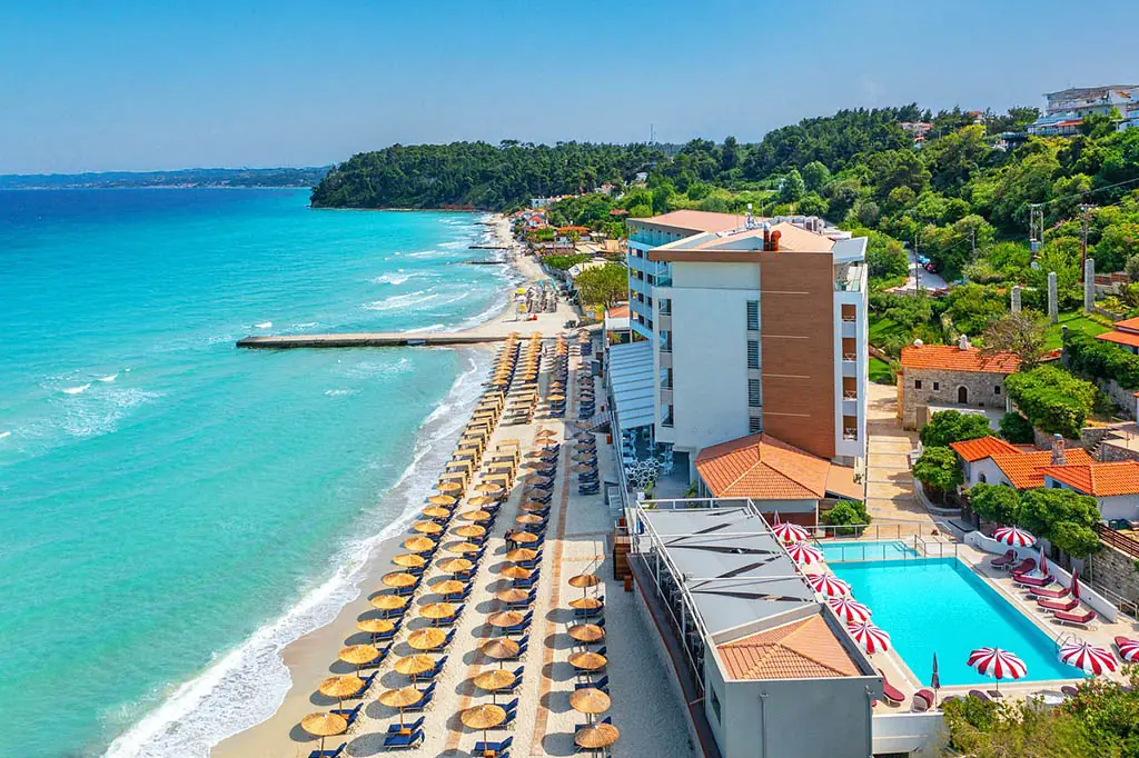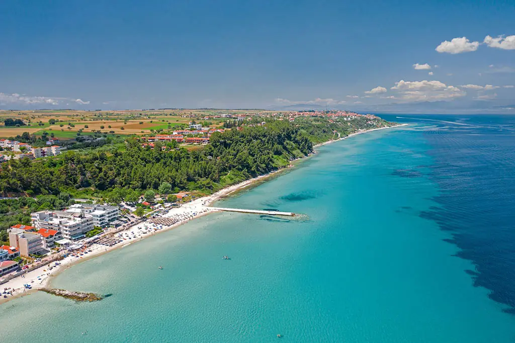 Nestled on the sun-kissed Kassandra Peninsula of Halkidiki, Kallithea (meaning “beautiful view”) is one of the region’s liveliest seaside destinations. Known for its cosmopolitan atmosphere, vibrant nightlife, crystalline waters, and proximity to cultural landmarks, Kallithea blends relaxation with adventure, making it a top choice for both families and young travelers.