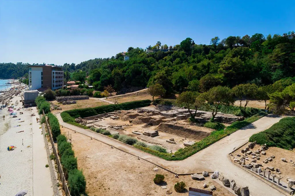 Just a short walk from the beach, these ancient ruins date back to the 4th century BC. The site once served as a religious center for worshippers of Ammon Zeus and offers a fascinating glimpse into Halkidiki’s ancient past.