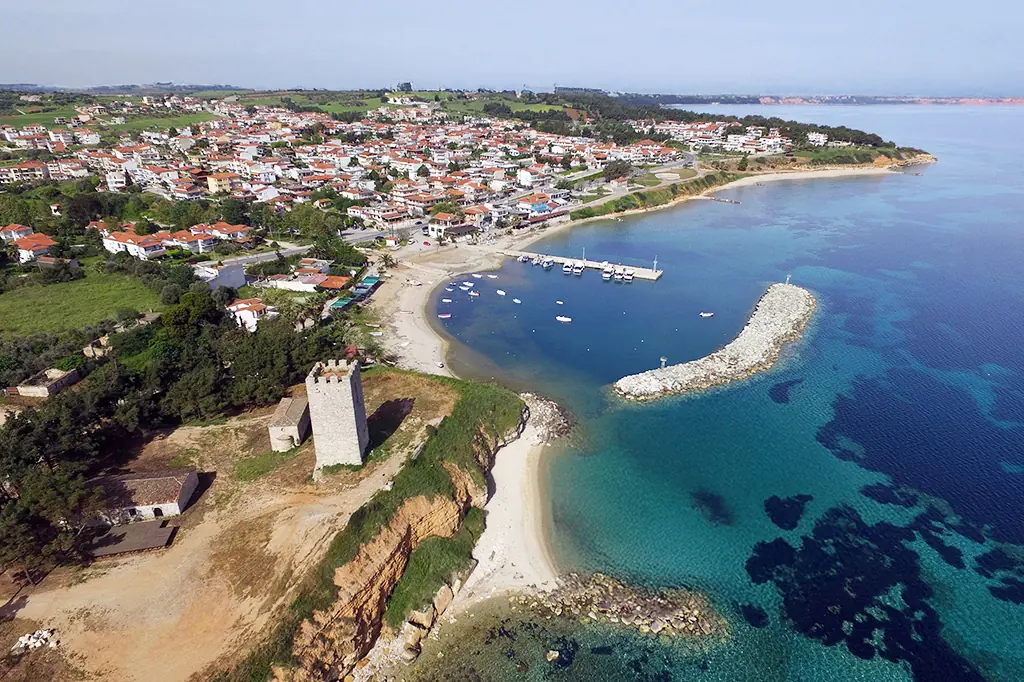 Nea Fokia (also spelled Nea Fokaia or Nea Fokea) is one of Halkidiki’s most charming coastal villages—an inviting blend of sandy beaches, traditional Greek hospitality, and fascinating Byzantine heritage. Nestled at the northern edge of the Kassandra Peninsula, the village serves as a peaceful base for travelers seeking relaxation, local culture, and easy access to Halkidiki’s livelier resort towns.