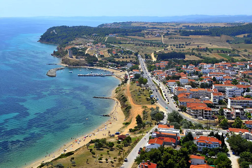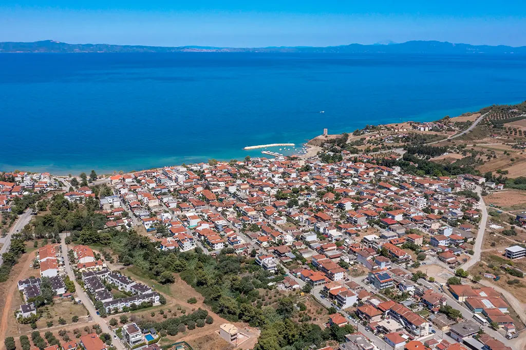 Its location at the entrance to Kassandra makes it easy to explore the peninsula’s vibrant nightlife (in places like Kallithea), luxurious beach bars (in Sani and Afytos), and serene natural landscapes.