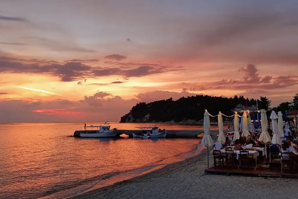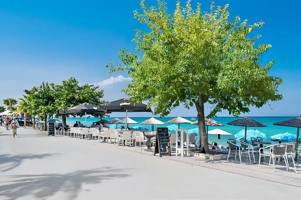 Compared to more bustling resort towns on Kassandra, Siviri feels slower and more intimate. The waterfront is lined with tavernas, cafés, and small bars—ideal for low-key evenings with sunset views.