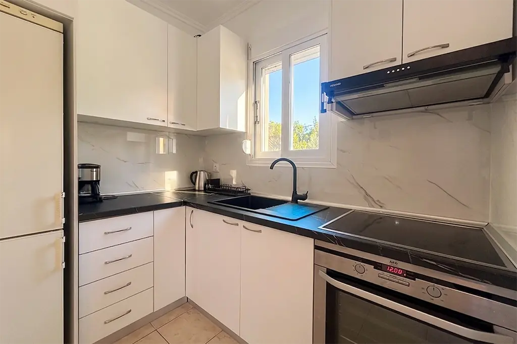 he beach in Kallithea is sandy, ideal for relaxing and swimming.