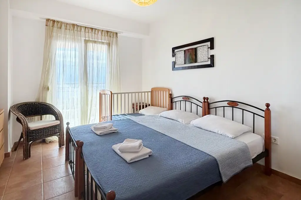 1st Bedroom: Double bed + baby cot (air-conditioned)